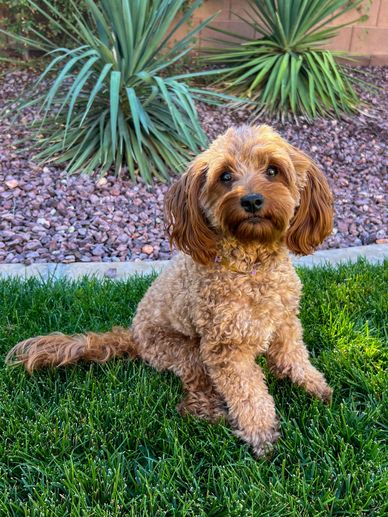 Charlie Tucker is a 9 pound AKC Red Toy Poodle stud from our good friend, Carly, with Picture Perfect Doodles. He has passed his OFA clearances for heart, patella, hips and eyes. His genetic testing has been done and he is 100% clear. He is adorable and sweet and we are excited to have him breed with some of our females.