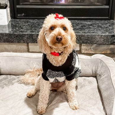 Our dam named Lula comes from the same litter as Lucy so she shares a great pedigree line. She weighs 21 pounds and is bred from a Hungarian champion, Cream Golden Retriever dog and a champion red Toy Poodle. Her amazing guardian family has already showered her with affection and she loves being part of their family.
